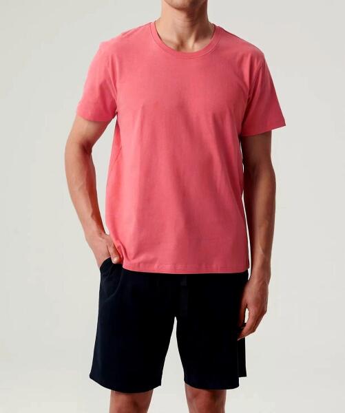 Férfi pizsama - kiváló minőségű "szurokhatású" pamut (külső oldalán apró bolyhos szőrök borítják, amelyek tapintásra barack bőrre emlékeztetnek) - rövid ujjú póló - kerek nyakkivágás - rövid, bő szabású rövidnadrág - oldalsó zsebek - öv húzózsinórral a derékbőség beállításához Összetétel: 100% pamut