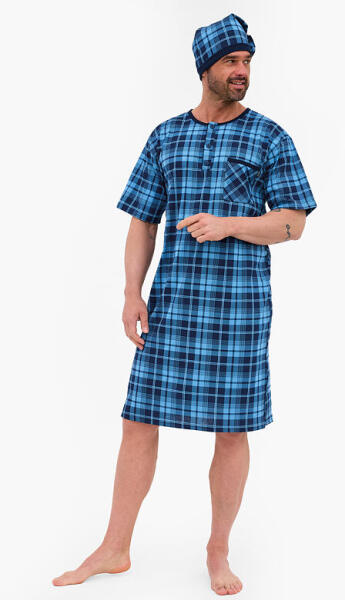 Cornette Alex férfi hálóing és hálósapka, kék, kockás, M