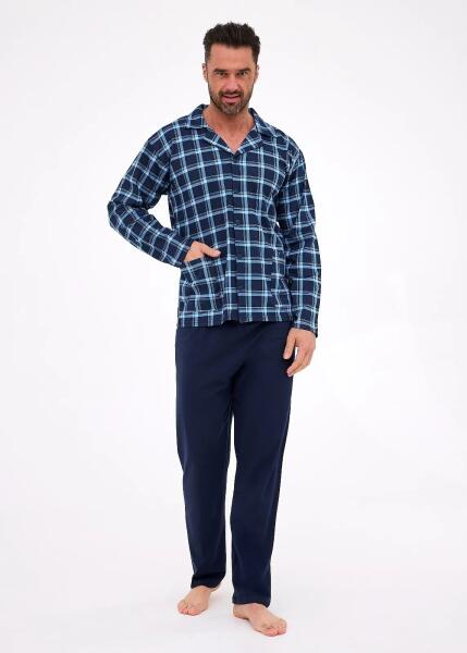 Férfi pizsama- kiváló minőségű pamut- mintás, hosszú ujjú pulóver- gallérral, gombos rögzítéssel, zsebekkel- hosszú nadrágÖsszetétel: 100% pamut