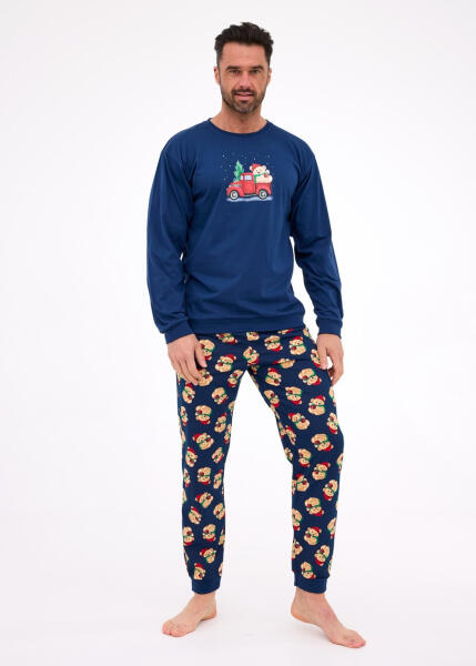Ez a férfi pizsama nagyon kényelmes anyagból készült, hosszú ujjú ingből és hosszú nadrágból áll. A gumija nem szorít, nagyon kényelmes.