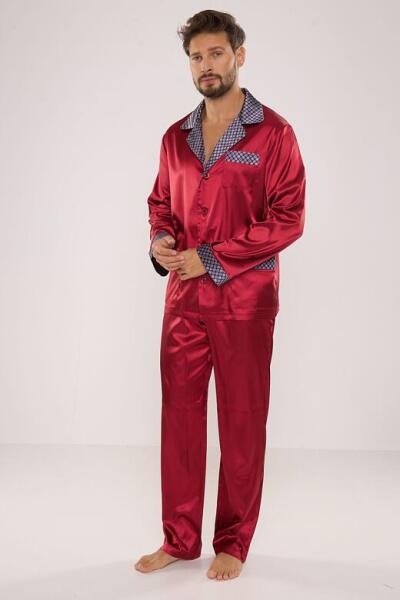 De Lafense Adam férfi szaténpizsama, borvörös, 4XL