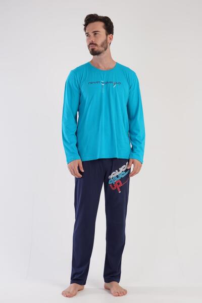 Férfi hosszú ujjú pizsama 3050930000, XL, türkizkék
