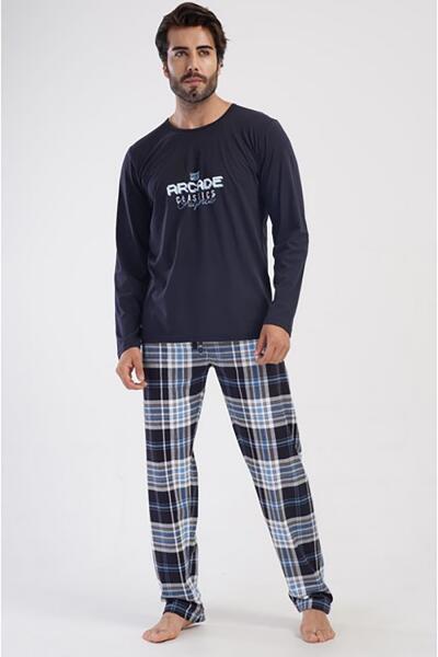 Férfi hosszú ujjú pizsama, hosszú nadrág 4040921223 L sötétkék