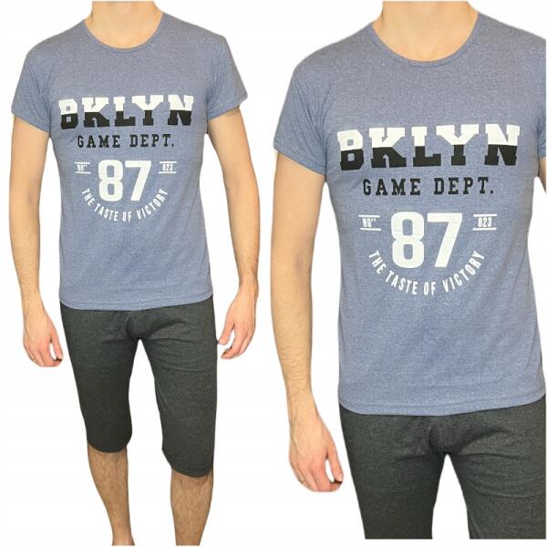 Férfi pizsama farmer melange 3/4-es nadrág rövid ujjú Bklyn L
