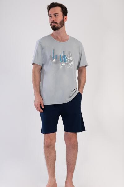 Férfi rövid ujjú pizsama, rövidnadrág 4084280000 szürke Vienetta XXL szürke