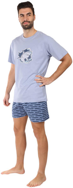 Ez az alsónemű egyértelműen bizonyítja, hogy a férfi pizsama még mindig a modern férfiak ruhatárának része. A rövid ujjú felső ideális tavaszi, nyári és egész éves viseletre melegebb körülmények között. Az alsó rész egy rövidnadrágból áll, kényelmes, klasszikus, rugalmas derékpánttal, amely jól tart anélkül, hogy túl szoros lenne. A légies szabást nemcsak az ágyban, hanem otthoni pihenés közben is értékelni fogod.