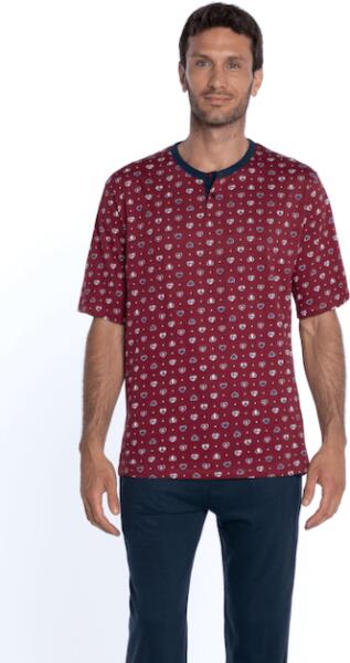A kellemes és kényelmes DANIELE férfi pizsamát 100%-os pamutból gyártották. A pamut súlya 140 g/m2. A Guasch cég, hagyományos spanyol gyártó már 1859-től készíti a legjobb férfi pizsamákat.