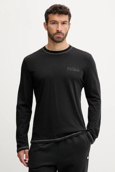 Guess hosszú ujjú pamut pizsama felső fekete, sima, U5RI00 KCAM1 - fekete M