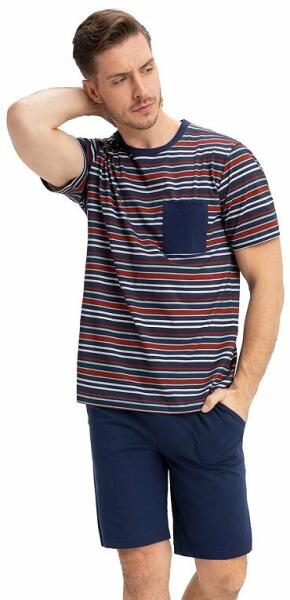 Luna Fred férfi pizsama, kék, színes csíkos, M