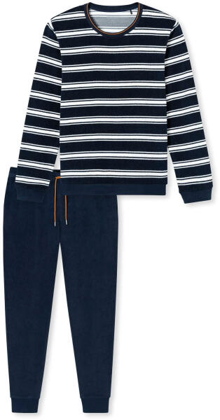 Schiesser frottírpizsama - férfi - méret L 52/54 - kék/csíkos