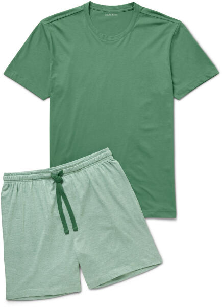 Férfi rövidnadrágos pizsama, csíkos/zöld Szín: Zöld felsőrész Nadrág: olívazöld-fehér csíkos Anyag: 100% pamut (támogatja a Cotton made in Africa kezdeményezést) Méretek: Felsőrész teljes hossza: kb. 77 cm Nadrág belső szárhossza: kb. 16 cm (L 52/54-es méret) Fazon: Regular Fit Rövid férfi hálóruha puha single-jersey anyagbólA nadrág oldalsó bevágott zsebekkel, rugalmas, gumis derékpánttal és megkötőkkelA felsőrész kerek nyakkivágássalTámogatja a Cotton made in Africa kezdeményezéstEz a pizsama támogatja a termelőket.