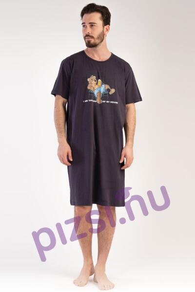 Férfi hálóing: rövid ujjas kényelmes középhosszban nyomott mintával. Anyaga a legjobb komfort érzetét keltő puha tapintású: 100% pamut.